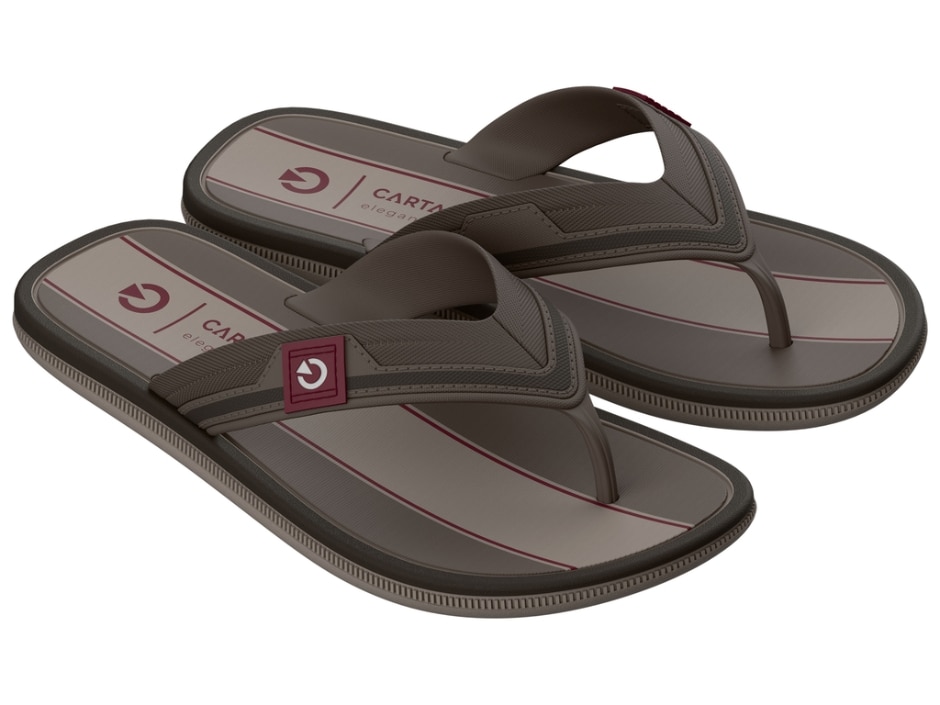 Cartago Maiorca III: um clássico com estilo renovado. O modelo ganha novas grafias que reforçam sua identidade sofisticada e atemporal. A combinação de cores, a sobreposição de materiais na forquilha e os elementos gráficos inspirados no universo clássico trazem mais personalidade ao visual. Ideal para momentos de descontração com conforto, autenticidade e elegância.
