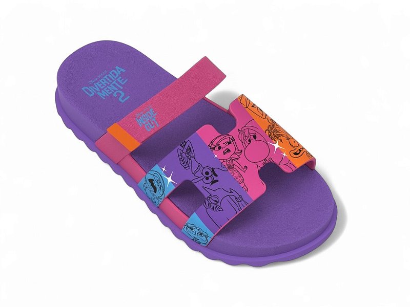 As tiras no formato H que são tendência no mundo da moda, agora recebem cores vibrantes, personalização do Divertidamente. Modelo usual e moderno, possui fechamento em velcro no peito do pé, garantindo conforto e segurança ao calce. As tiras recebem grafias reconhecidas das licenças e a tira superior conta com a assinatura e elementos de cada personagem. Tendência no mundo da moda as tiras H chegam no nosso Disney Glam Slide.